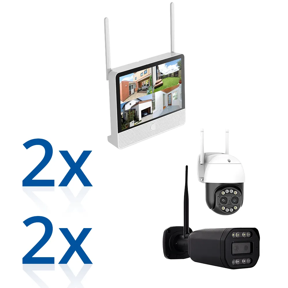 Alle Kameras verfügen über Nachtsicht, Alarm mit KI und Gegensprechfunktion.