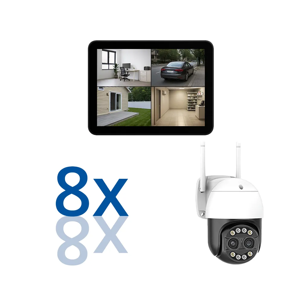 BERGHOCH | 8x 8MP Funk Kamera Set | PTZ Drehbar | 8x Zoom | 4K | Monitor | Touch