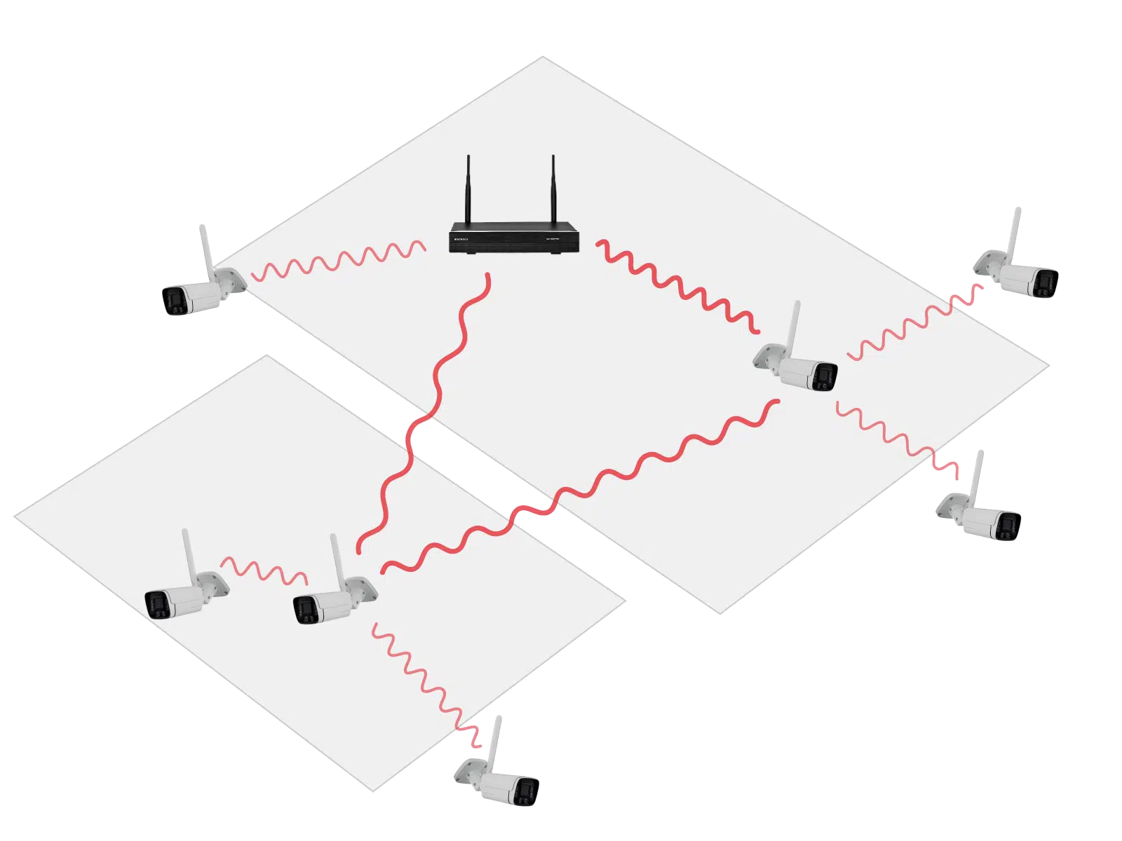 Im Vergleich zu anderen WiFi Videoüberwachungssystemen mit nur 2 dBi bietet Ihnen das neue NVR System eine höhere und stabilere Funkreichweite mit 5 dBi an.