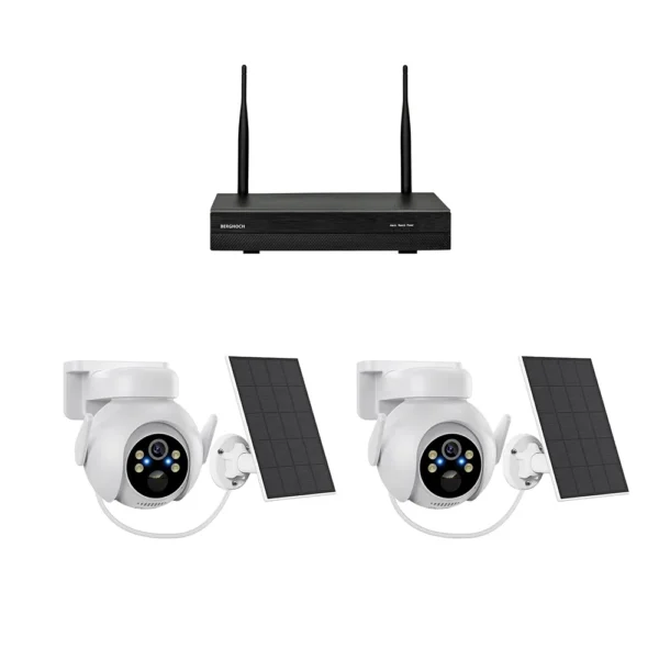 Alle Kameras verfügen über Nachtsicht, Alarm mit KI und Gegensprechfunktion.