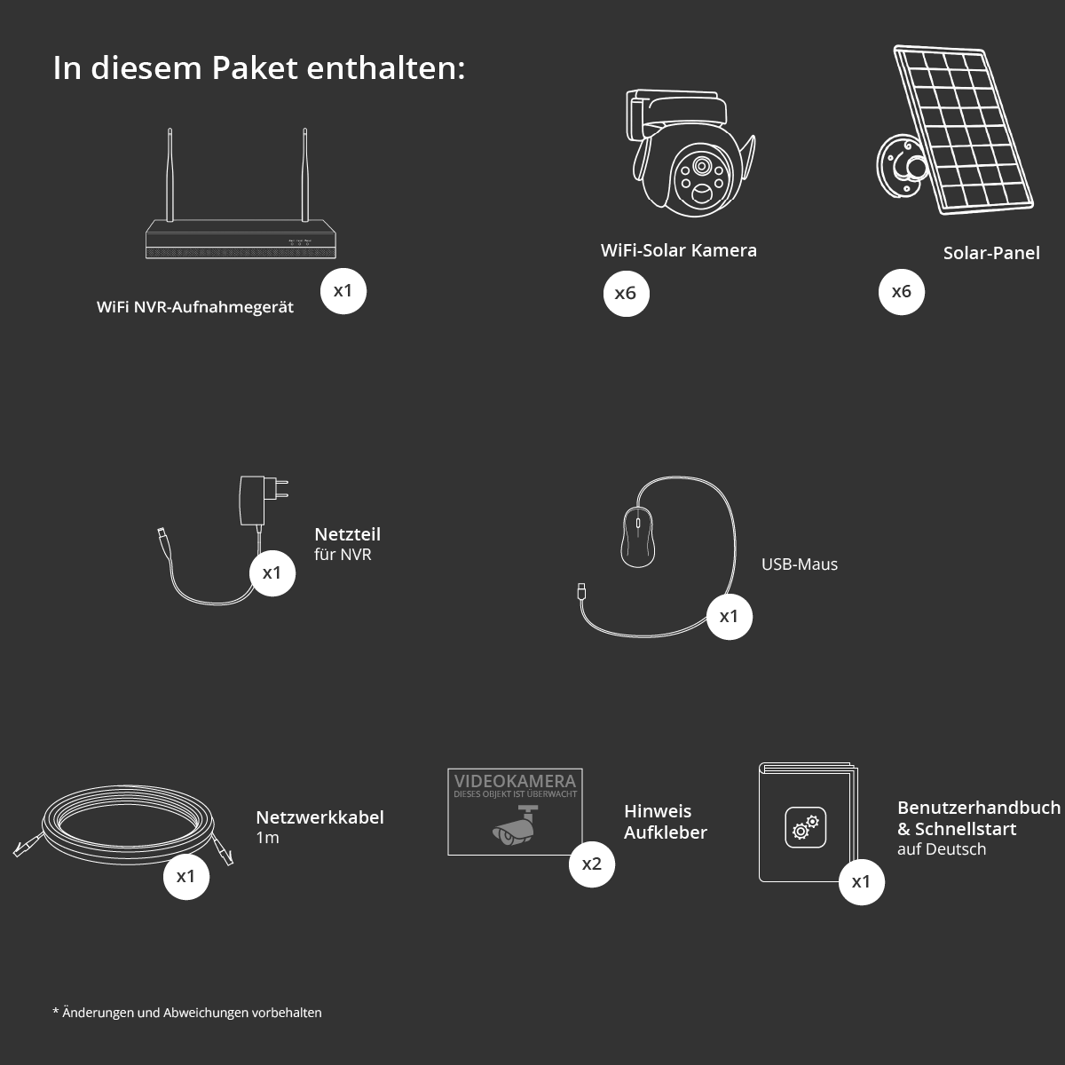 Alle Kameras verfügen über Nachtsicht, Alarm mit KI und Gegensprechfunktion.