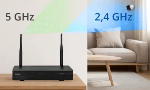 • Der Funk-NVR sollte möglichst zentral im zu überwachenden Bereich platziert werden, damit das Funksignal gleichmäßig alle Kameras erreicht.