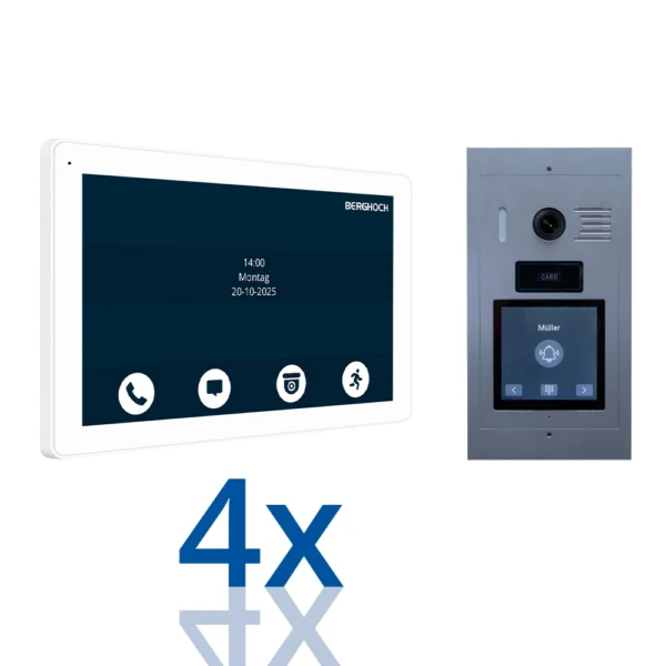 BERGHOCH I 2-Draht Türsprechanlage I B-T200-S I 4x Innenmonitor I Silber